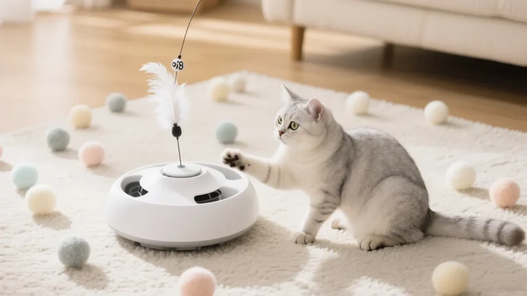 Game types vary: feather wands mimic bird flight to attract pouncing; laser pointers guide chasing, but must end with a physical toy to prevent frustration; electric toys are suitable for use when the owner is busy, but supervision is required.